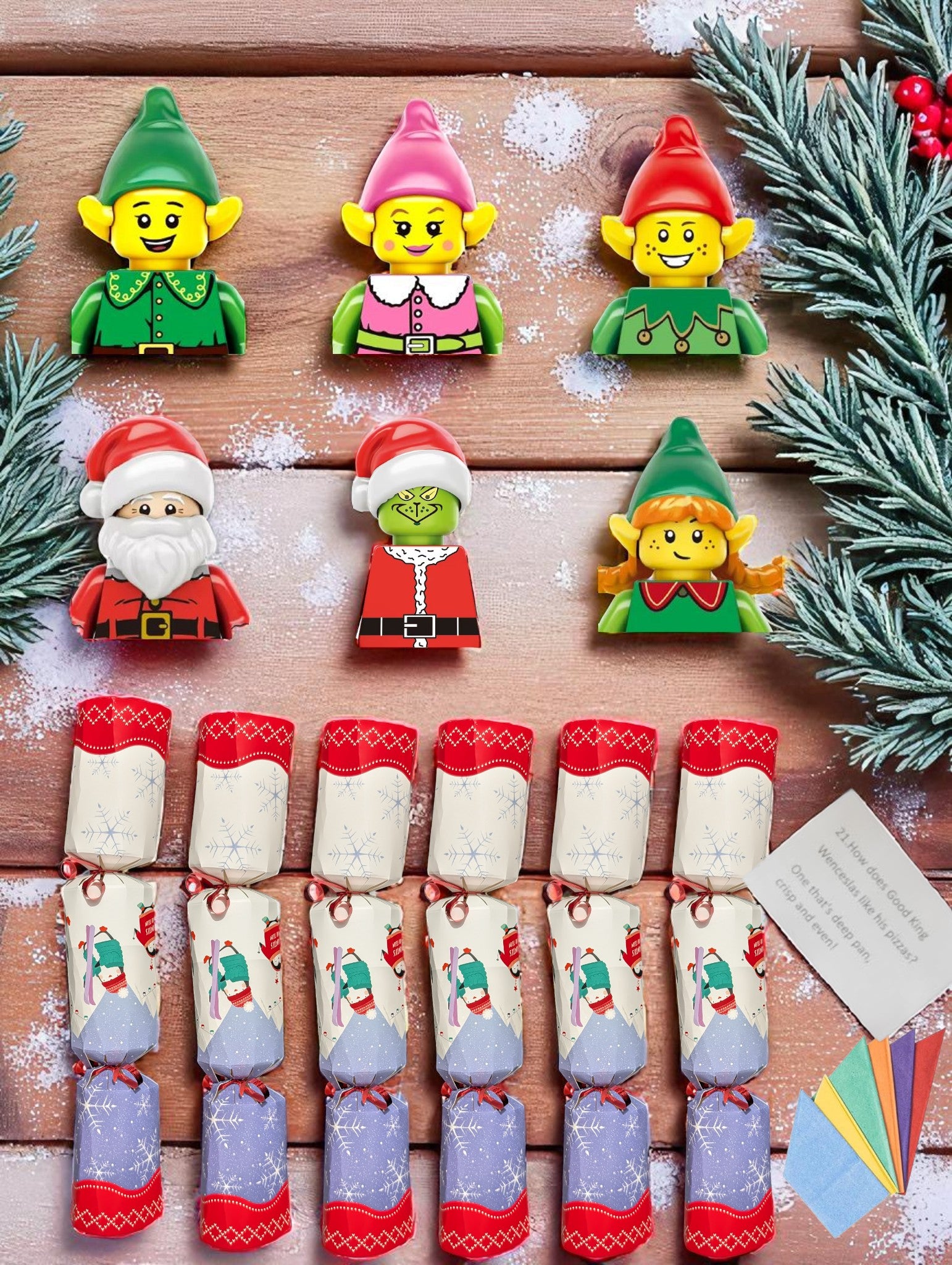 6 Deluxe Christmas Crackers with Christmas Themed Minifigures with SNAPS!